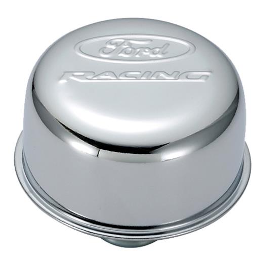 Engine Crankcase Breather Cap, Steel, Chrome, Push-In Type, 3 in. Diameter, Ford Racing Logo, Each